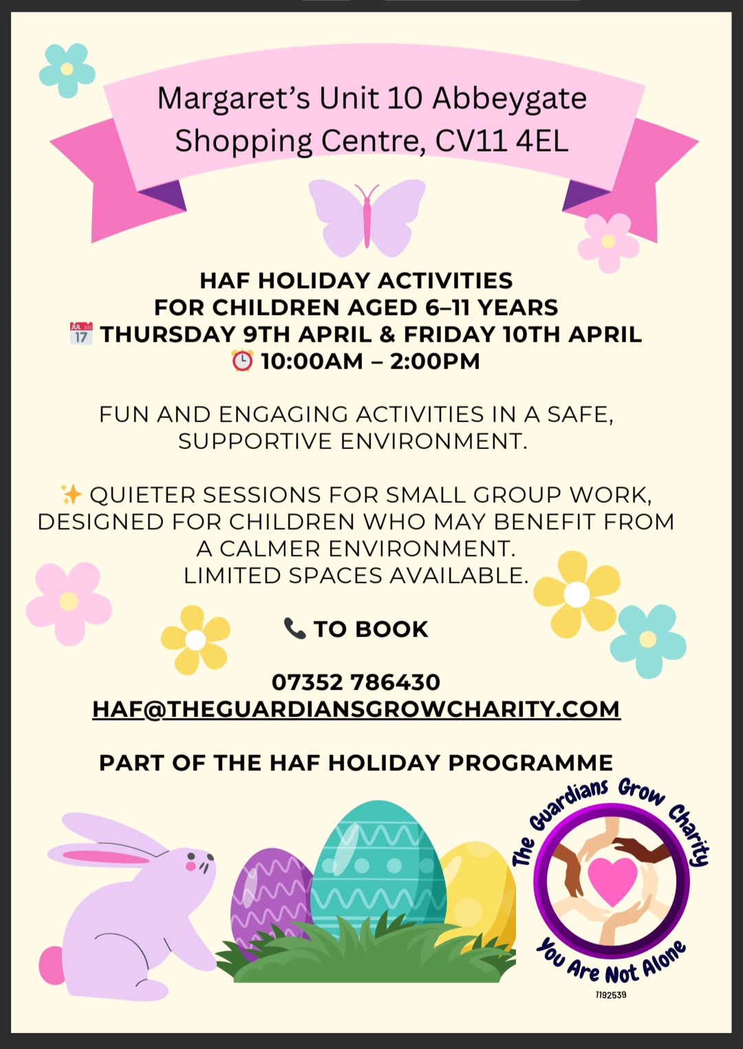 HAF Holiday Activities For children aged 6 - 11 years Fun and engaging activities in a safe supportive environment Quieter sessions for small group work, designed for children who may benefit from a calmer environment LIMITED SPACES AVAILABLE